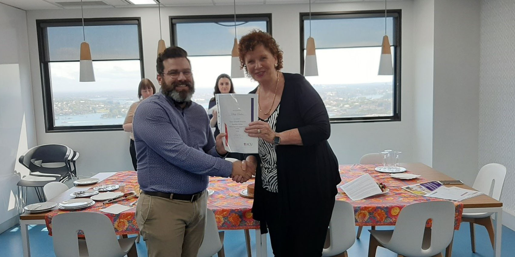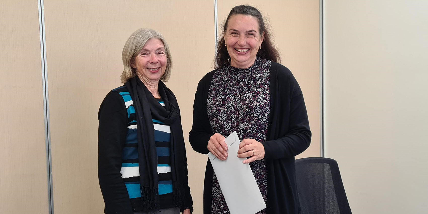 Eric Snowball Award Receipt with Debbie Plath on Strathfield campus