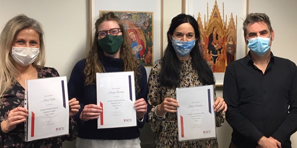 (presented by Professor Suzanne Chambers – Executive Dean – Faculty of Health Sciences – Left to Right - Ben Weir, Oscar Modesto, Joanne Bennett, Joy Baysari, Suzanne Chambers, Keong Yap, Rachel Dryer, Madeleine Fraser, Natalie Windsor